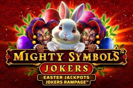 An Easter-themed slot game with a cheerful bunny and joker characters, set against a lively red background. It offers Easter jackpots and jokers rampage features, providing players with thrilling opportunities to win.