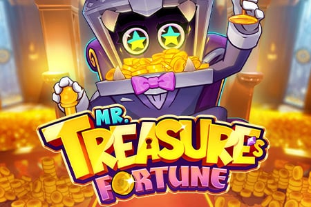 A treasure-hunting themed game featuring a robotic adventurer surrounded by gold coins and gems. Players spin for chances to uncover treasures with bonus features like wilds and free spins that maximize their potential rewards.